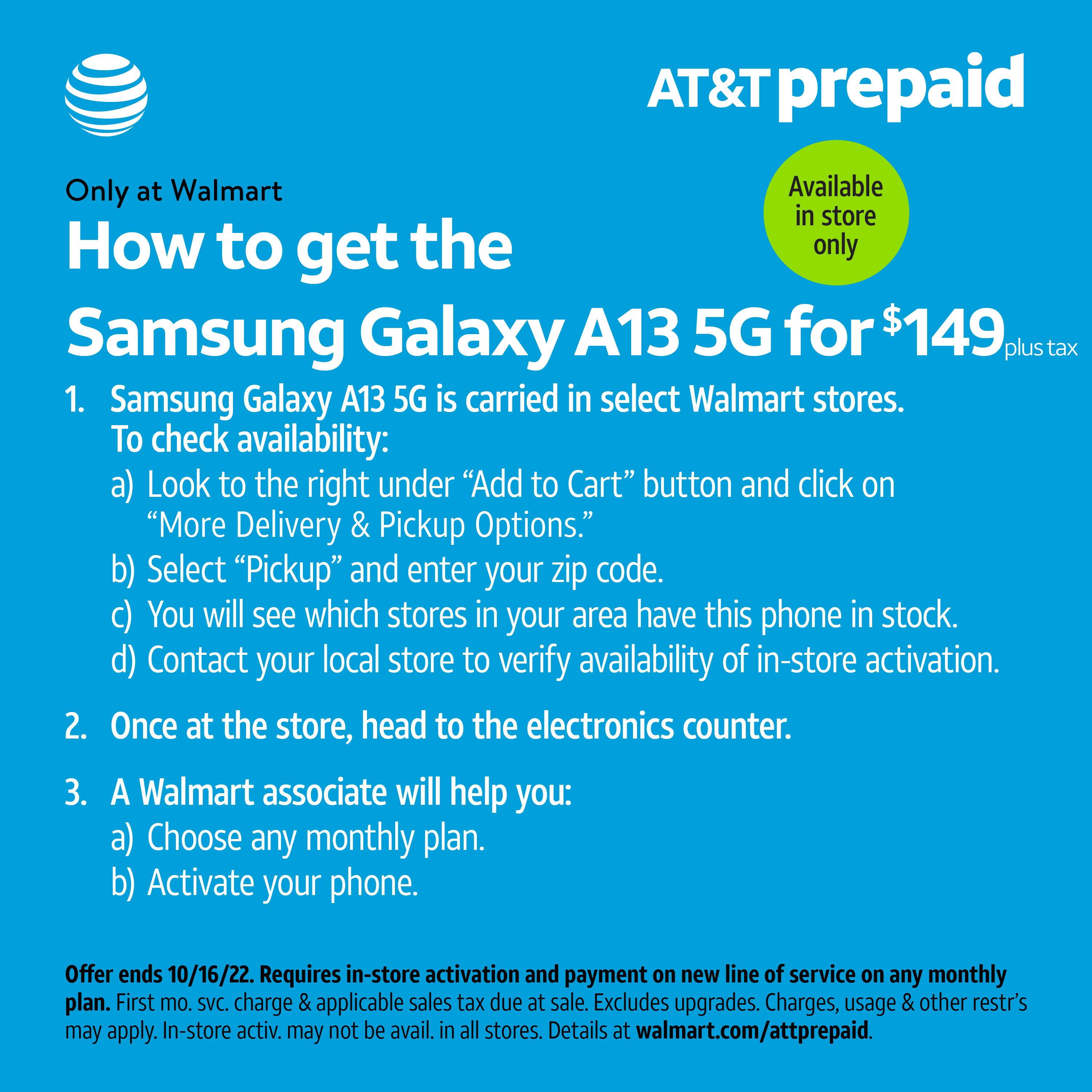 At T Samsung A13 5g 64gb Black Prepaid Smartphone Walmart Com