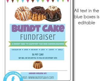 Bundt Cake Sale Fundraiser Flyer Template School Fundraiser Etsy
